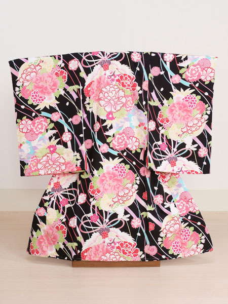 お宮参り・初着レンタル 女の子用(O-16)黒・牡丹 ジャパンスタイル