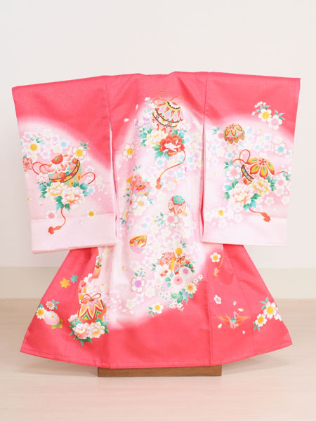 お宮参り・初着レンタル 女の子用(O-20)ピンク/鞠の初着・のしめレンタル衣裳をご紹介させて頂きます。
