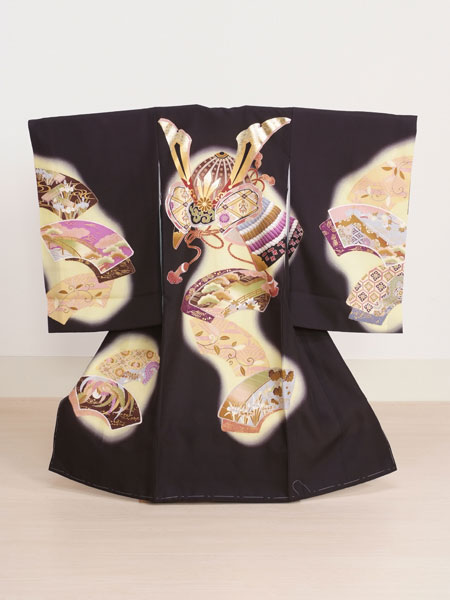 お宮参り・初着レンタル 男の子用(OM-21)黒・黄/かぶと