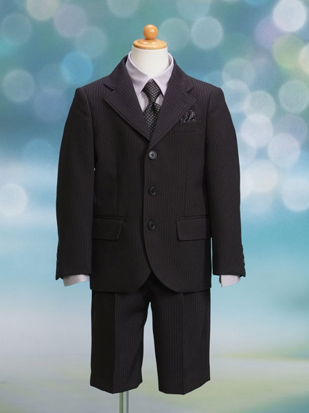 男の子フォーマルスーツレンタル(FB-29)110/半ズボン 黒/ストライプ OLIVER HOUSE