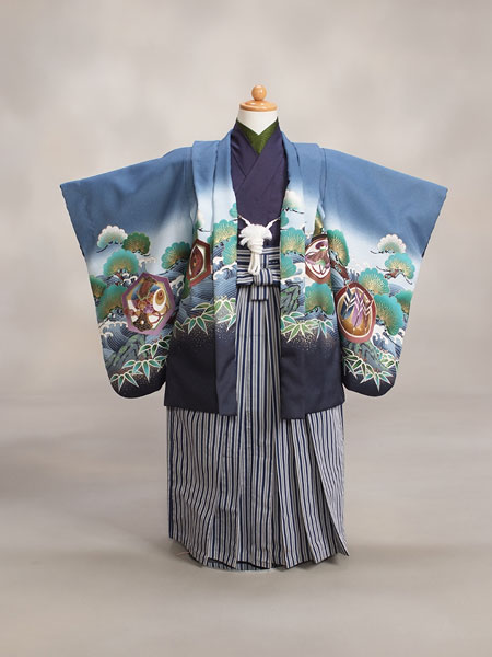 五歳男の子羽織袴セット【5-21】【水色×紺/かぶと】