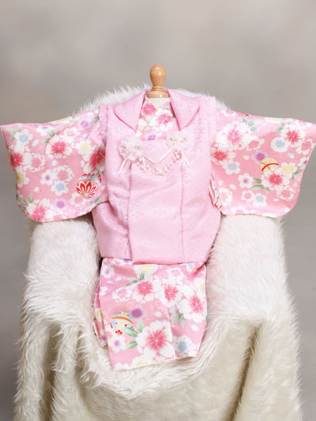 女の子ベビー着物レンタル(BG-1)1歳~1歳6ヶ月 ピンク/花