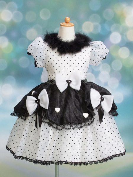 女の子フォーマルドレス【120】【白・黒/水玉】
