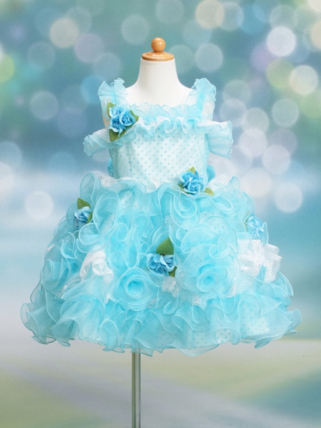 発表会・結婚式お呼ばれなどにオススメの女の子フォーマルドレス【100】【水色/花・水玉】のレンタル衣裳をご紹介させて頂きます。