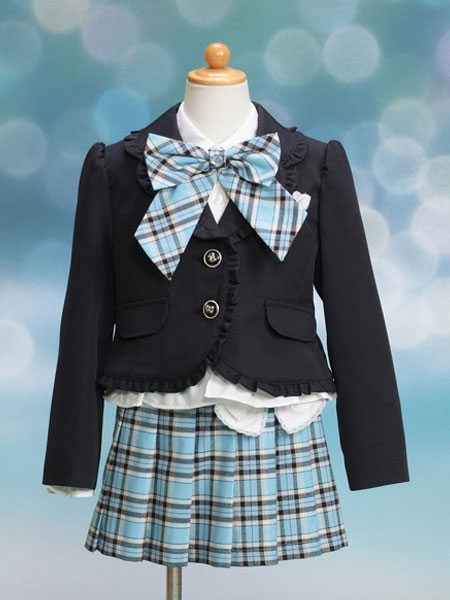 女の子フォーマルスーツレンタル(FG-18)115 紺・水色/チェック WHIP PARTY
