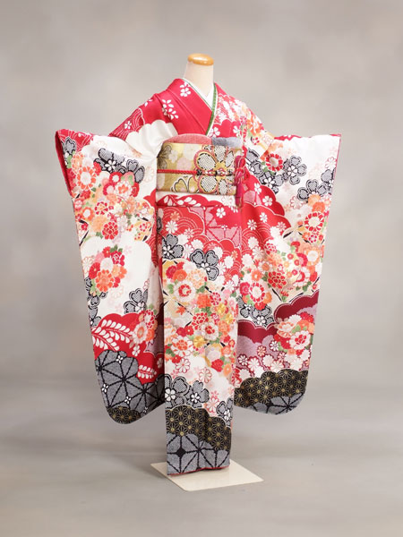 振袖レンタルフルセット(23-251)赤/熨斗のレンタル衣裳をご紹介させて頂きます。