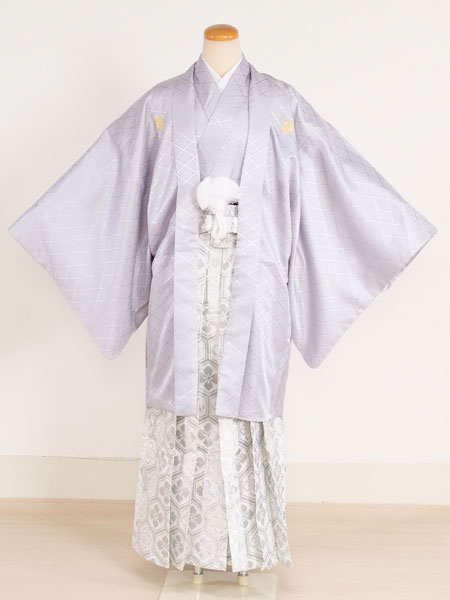 成人式男性袴レンタルセット(M20-49-MH-49)グレー|銀/紋