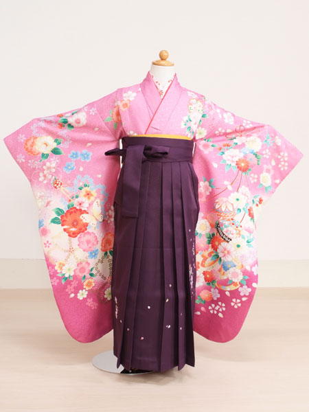 6~7歳女児袴レンタルセット(7-12-ha_m6)紫ピンク/花・鞠|紫/刺繍・桜のネット宅配レンタル衣裳のご紹介