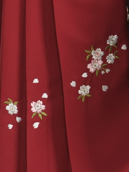 卒園式・七五三などで活躍している6~7歳女児袴セット【7-21-ha_e】【黒/花|エンジ/刺繍・桜】のレンタル衣裳をご紹介させて頂きます。