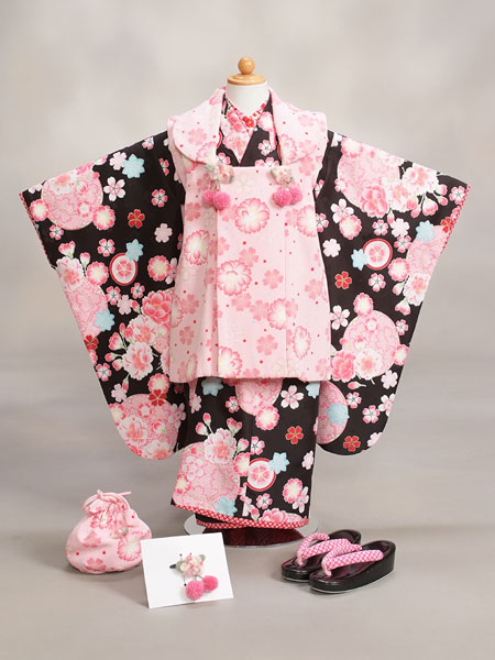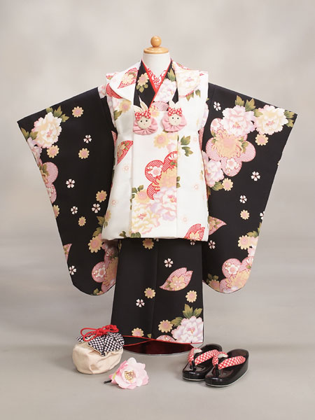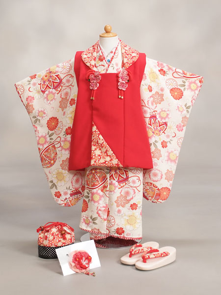 三歳女の子被布レンタルセット【白×多色/花】【ジャパンスタイル×つるの剛士】